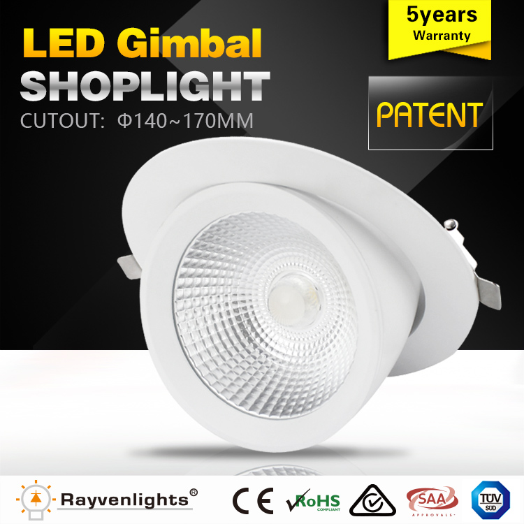 Home  > PRODUCTS  > new category  > LED Shoplight  >  40W Dimmable LED Gimbal Downlight SAA led lighting CE proved round rotated ceiling downlight